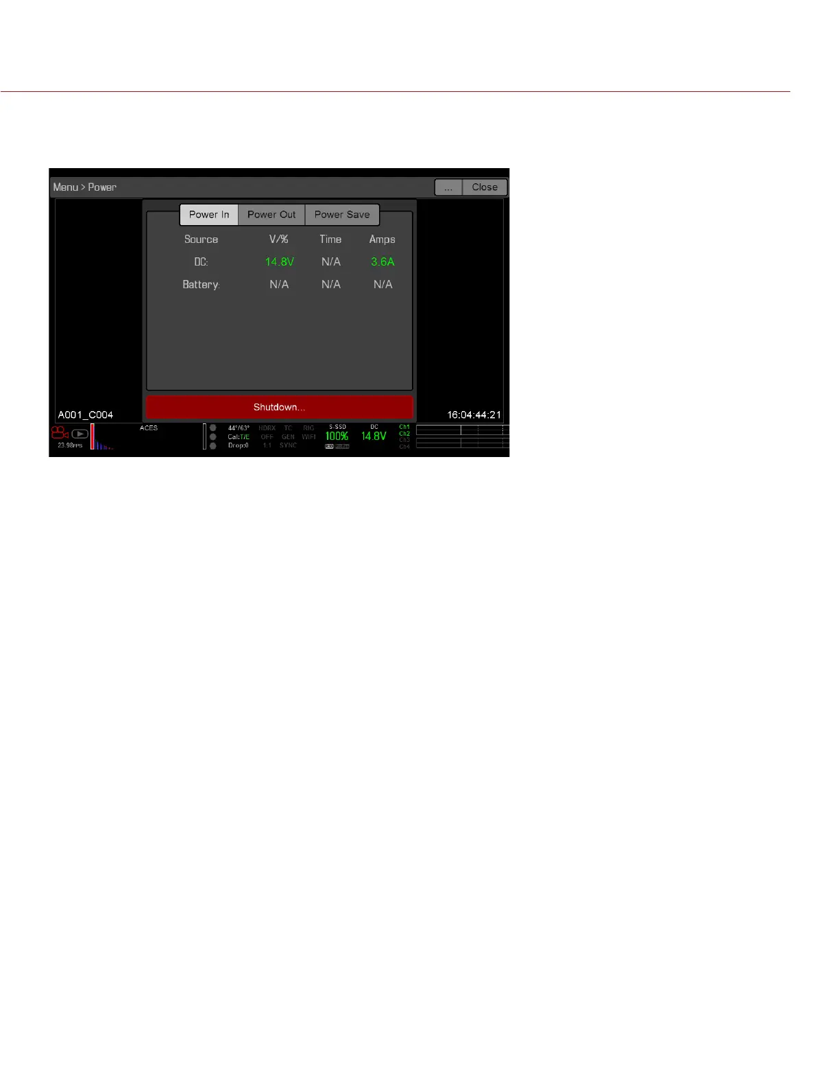 NOTE: For more information about powering the camera, see the DSMC Power Operation Guide, available at