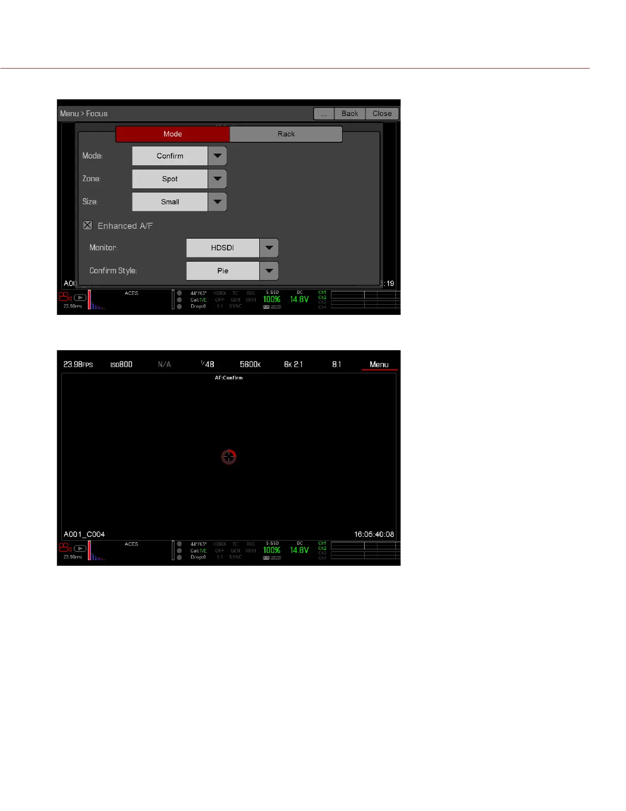 The target displays on the touchscreen, and the monitor that you selected for the Enhanced A/F feature is