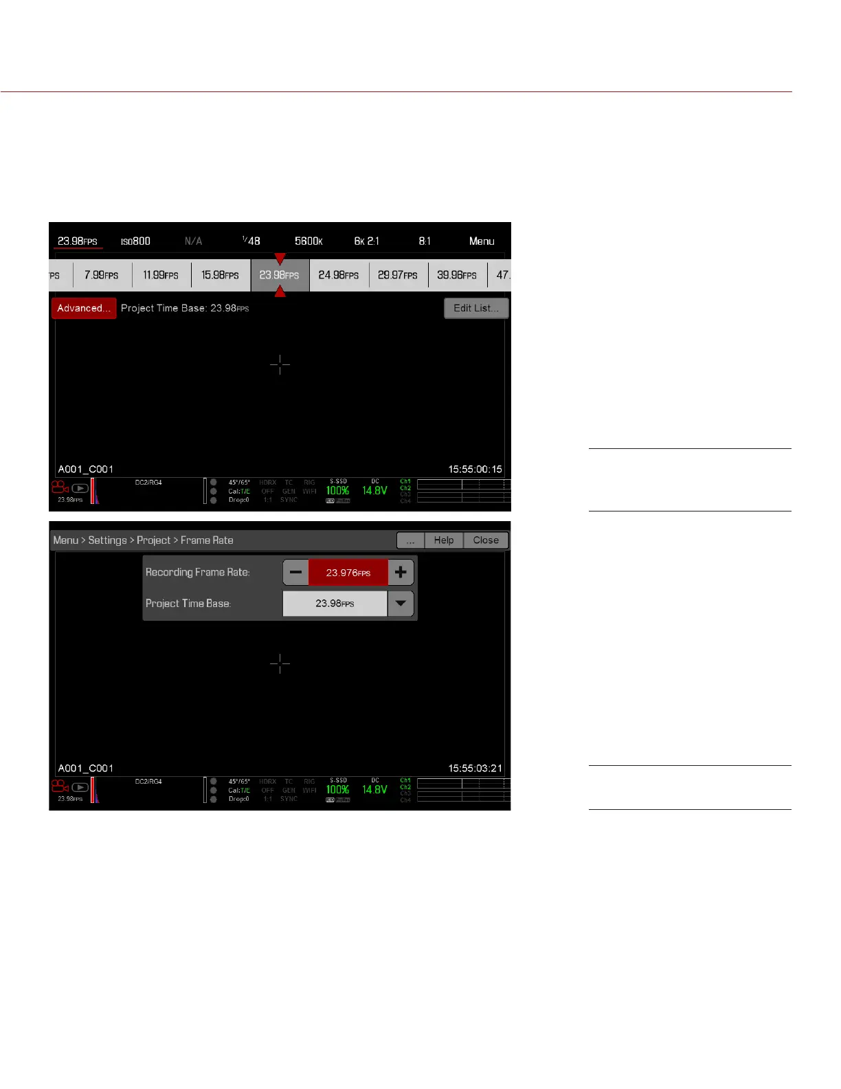 For example, select Advanced... in the Frame Rate menu to open Menu > Settings > Project > Frame Rate.