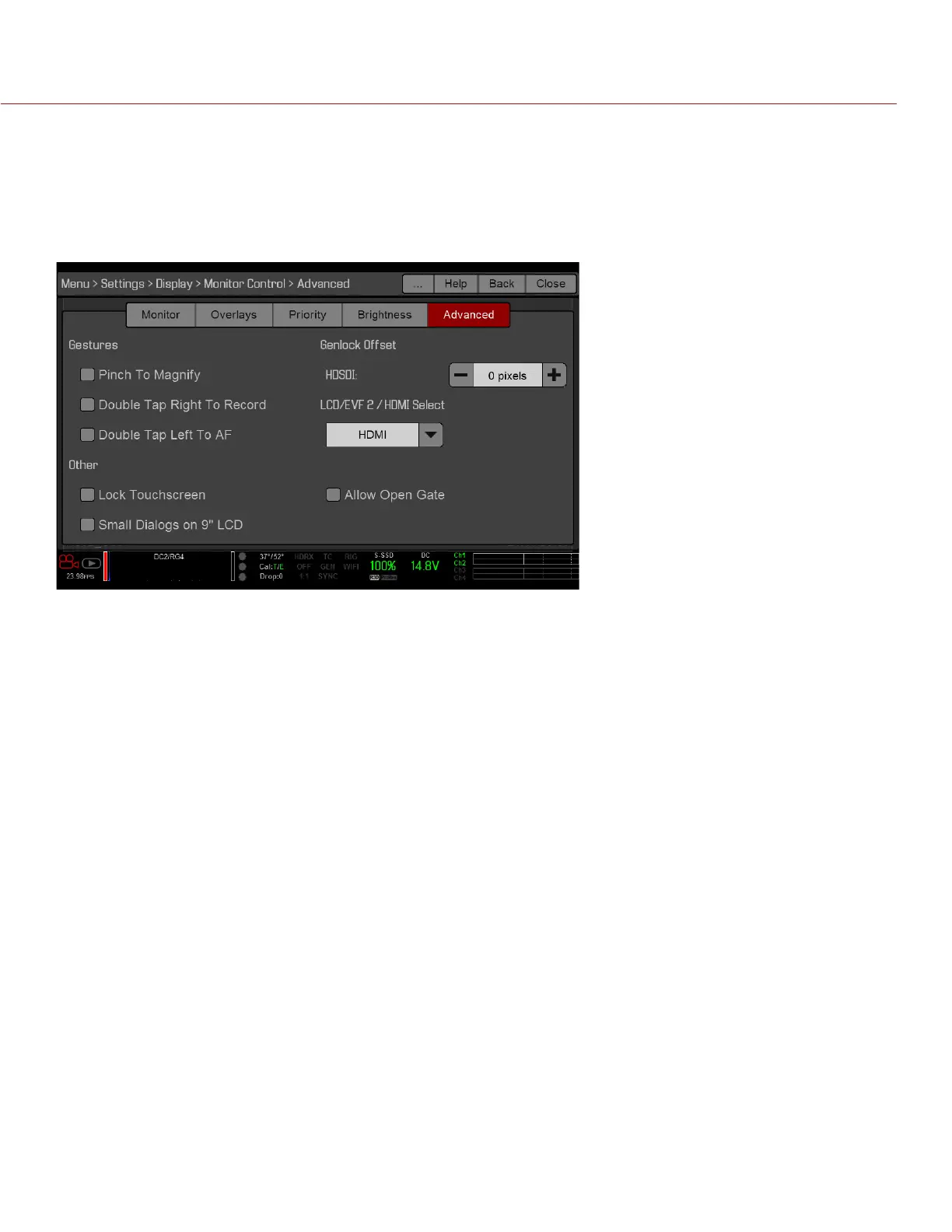 Select to enable either the secondary LCD/EVF port on the camera or the HDMI port on an expander. The