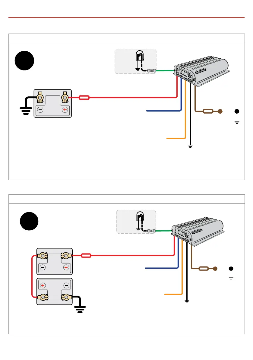 ** For vehicle ignition connection, connect to the ignition switched fuse in either the engine bay or the internal fuse box for the radio.