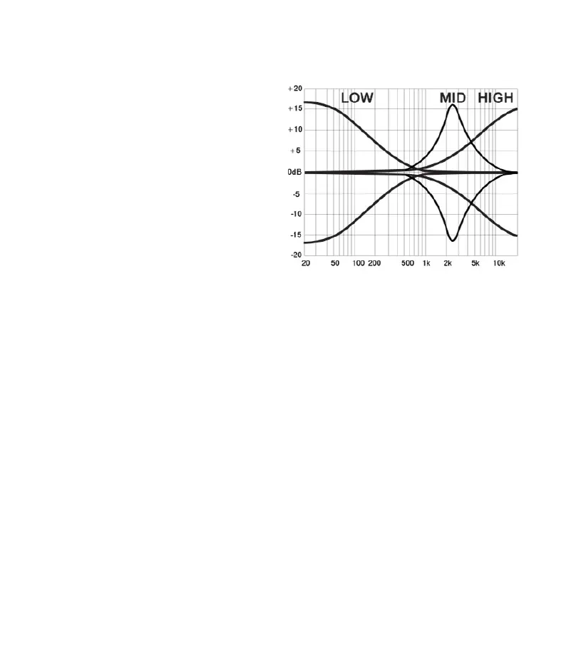 Mid band is a bell shaped peak/dip filter,