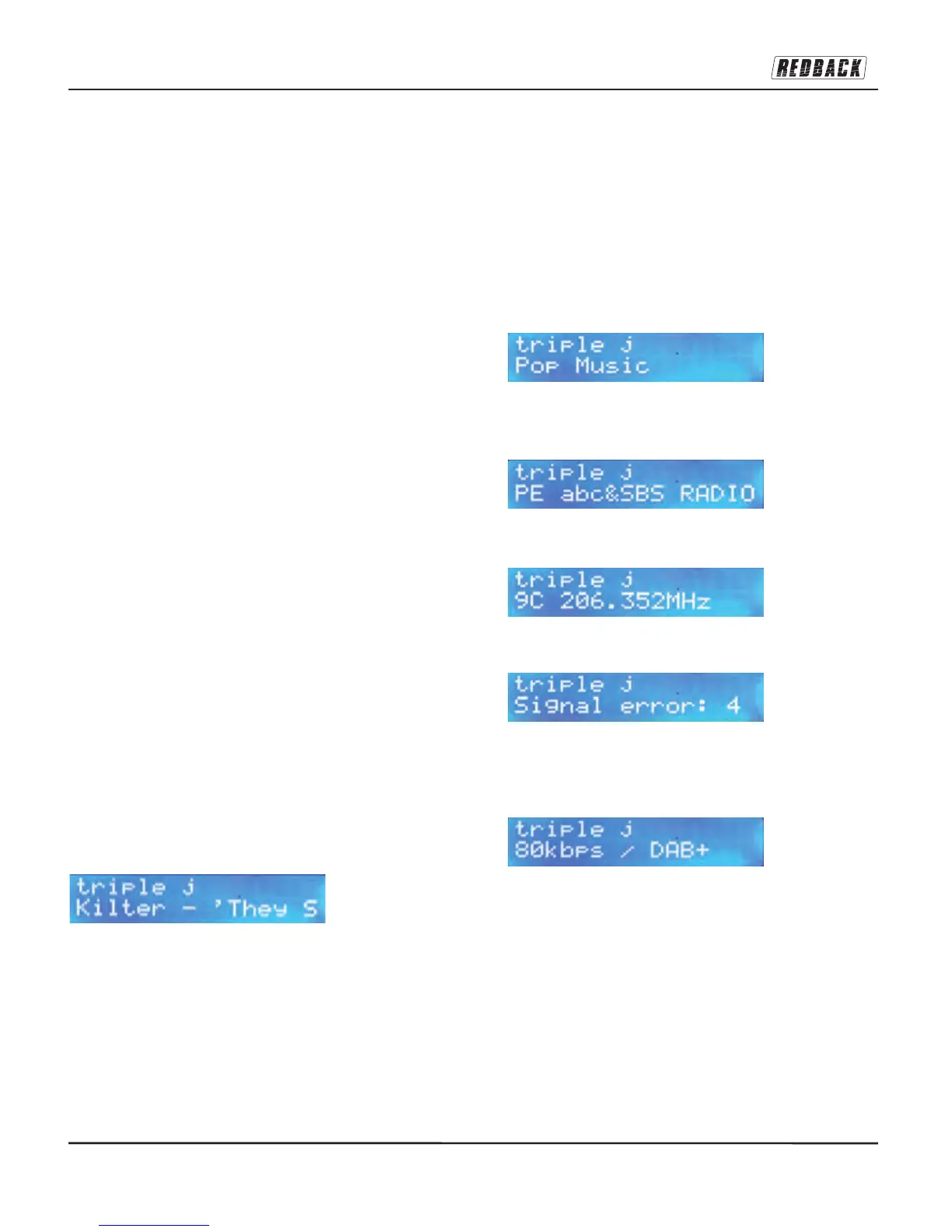 DAB+ DLS Information that is available by pressing