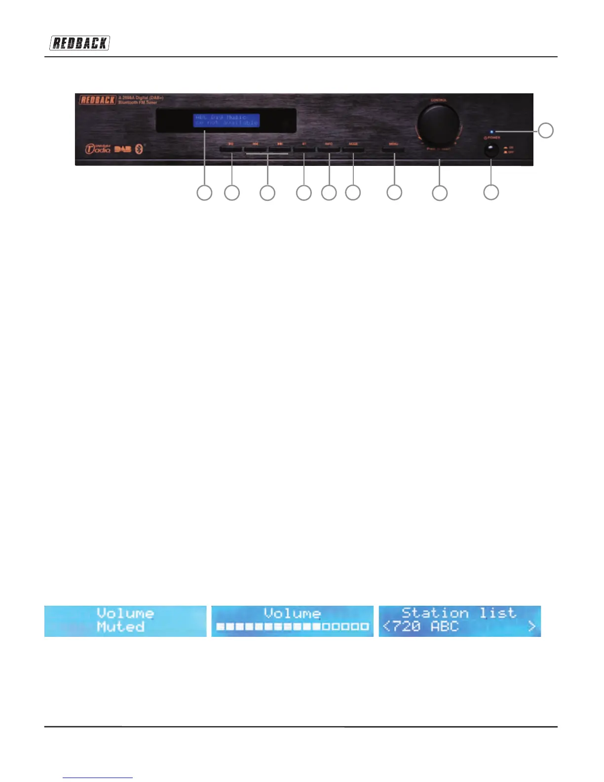 5. INFO: This changes what information is displayed on line two of the LCD display in DAB+ and FM and