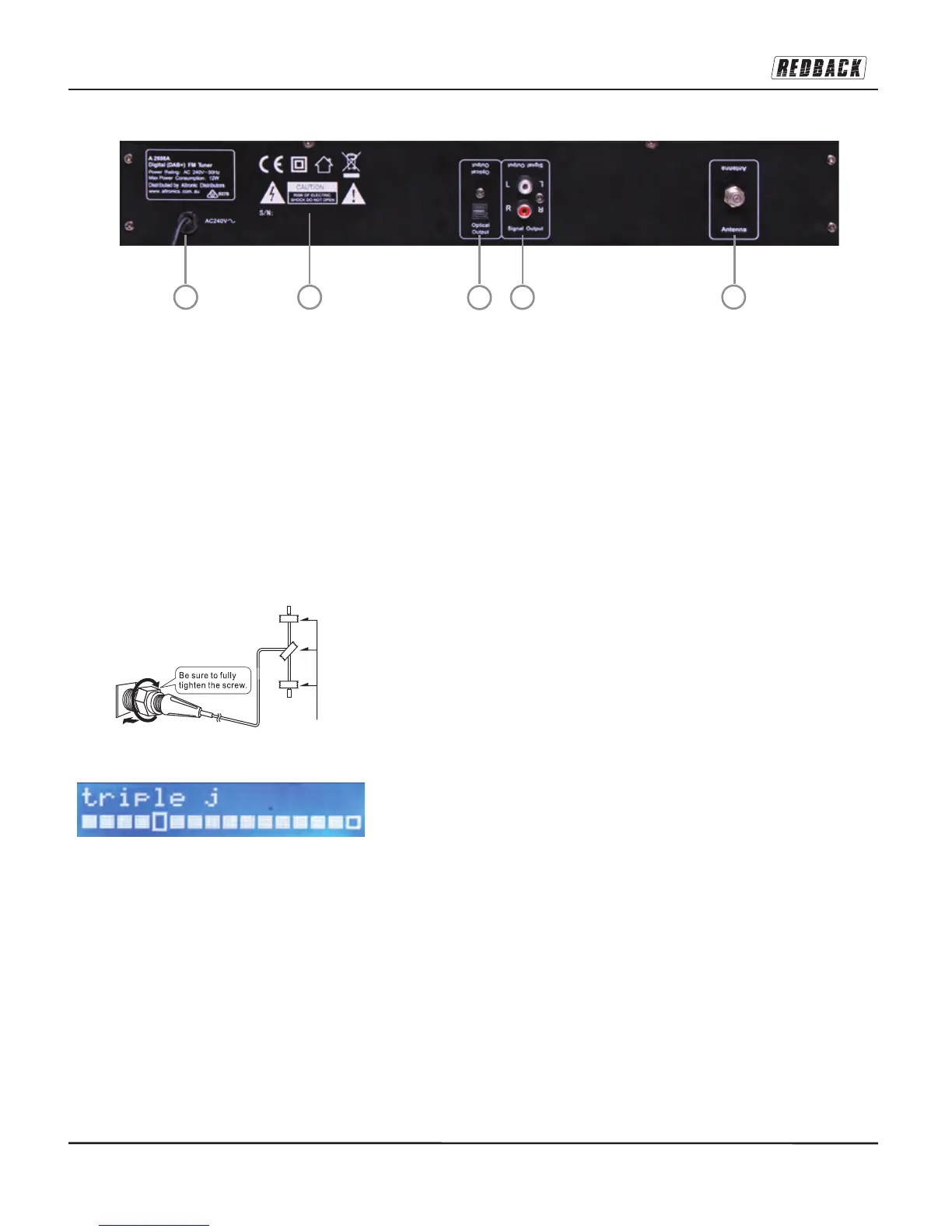 4. SIGNAL OUTPUT: For connection to analogue line input RCA sockets on amplifiers.