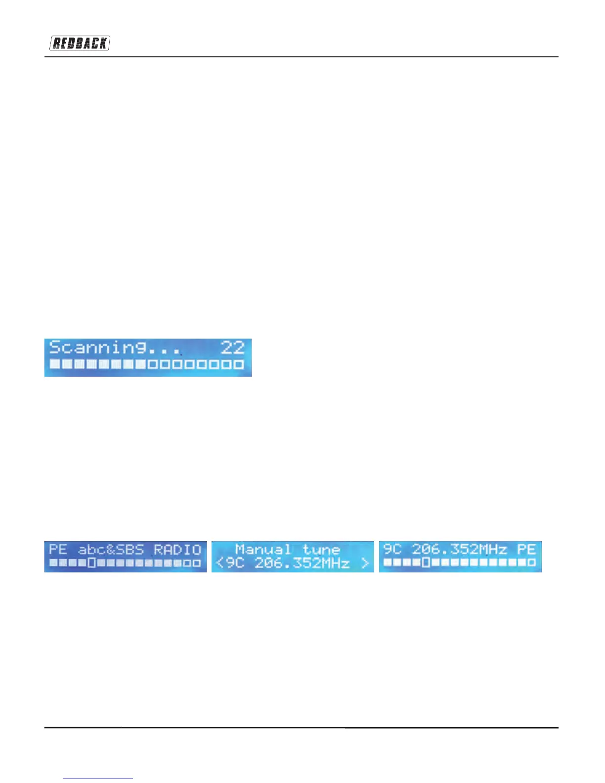 ‘Manual Tune’ appear on the LCD. Press ENTER and use TUN+ or TUN- key to select DAB stations by