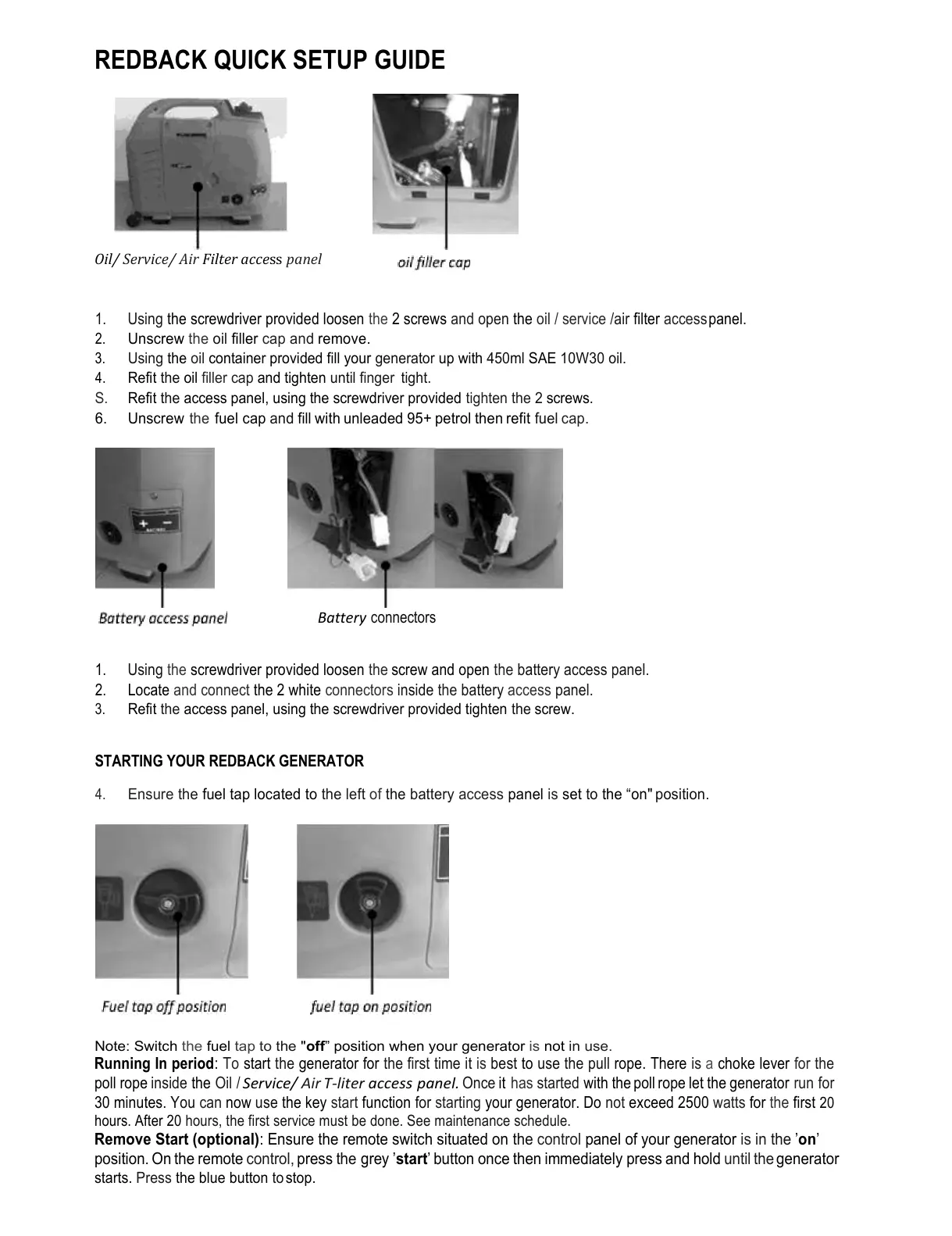 STARTING YOUR REDBACK GENERATOR