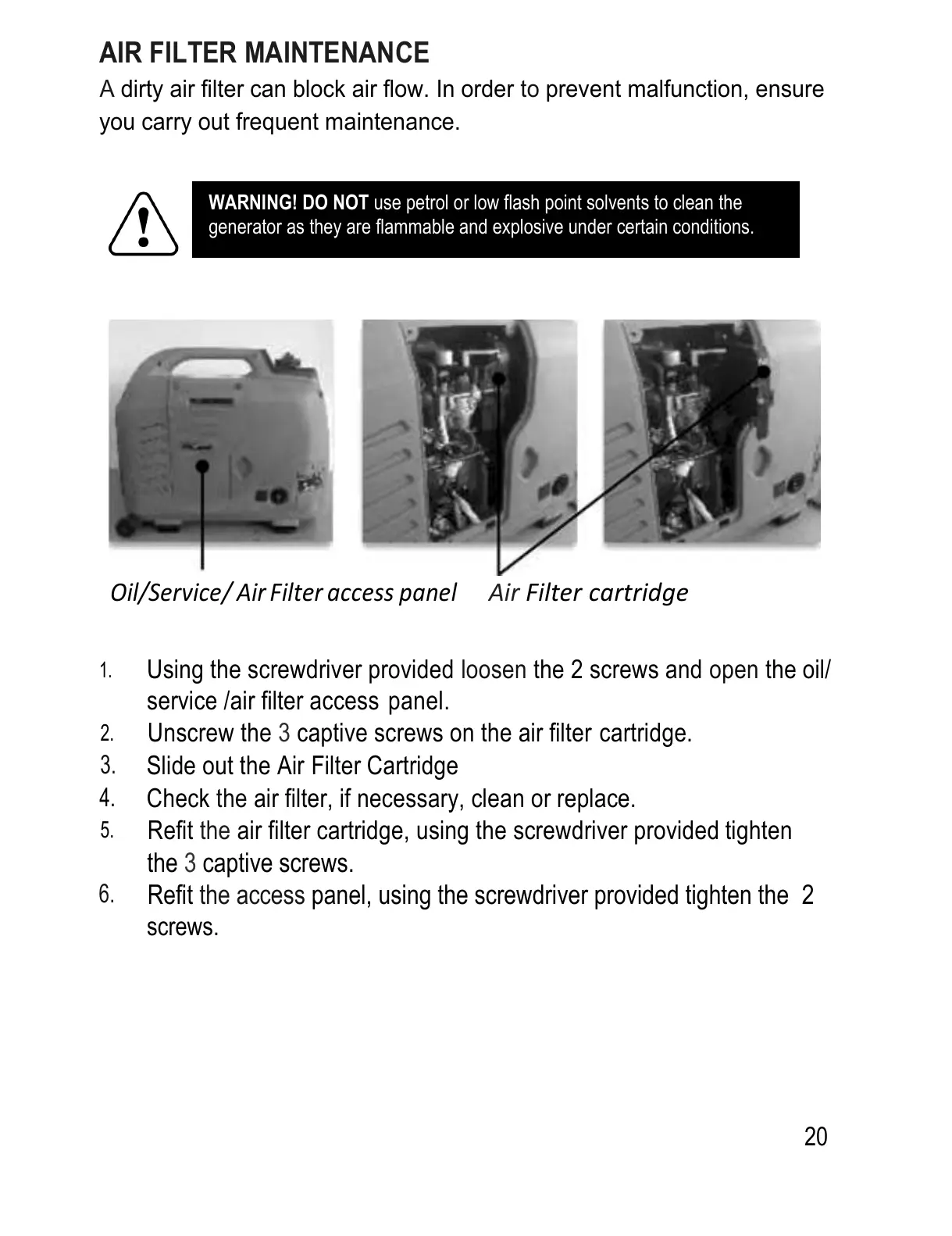 Refit the air filter cartridge, using the screwdriver provided tighten