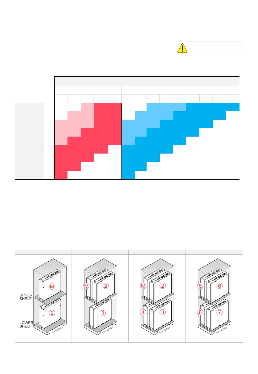 The allowable battery combinations and resultant storage capacity is shown below (in KWh).