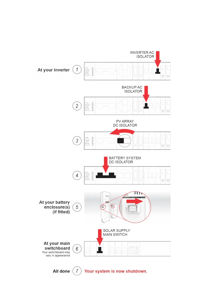 Occasionally, it may be necessary to shut down the inverter interrupting all inverter functions, noting that PV, battery, and grid
