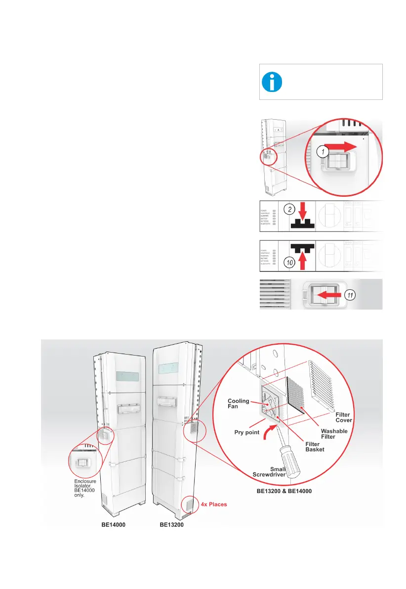 Occasionally, it is necessary to clean the battery enclosure filters and filter covers.