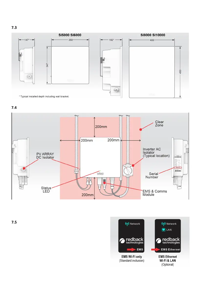 Redback SI5000 - Product Dimensions; Typical Installation; EMS Module Nameplates