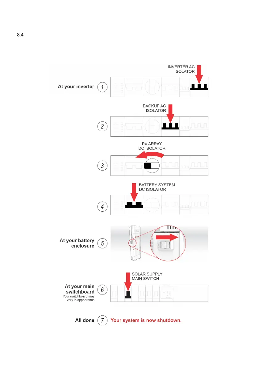 supplies remain energised to the isolators. Follow the procedure below to shut down your system.