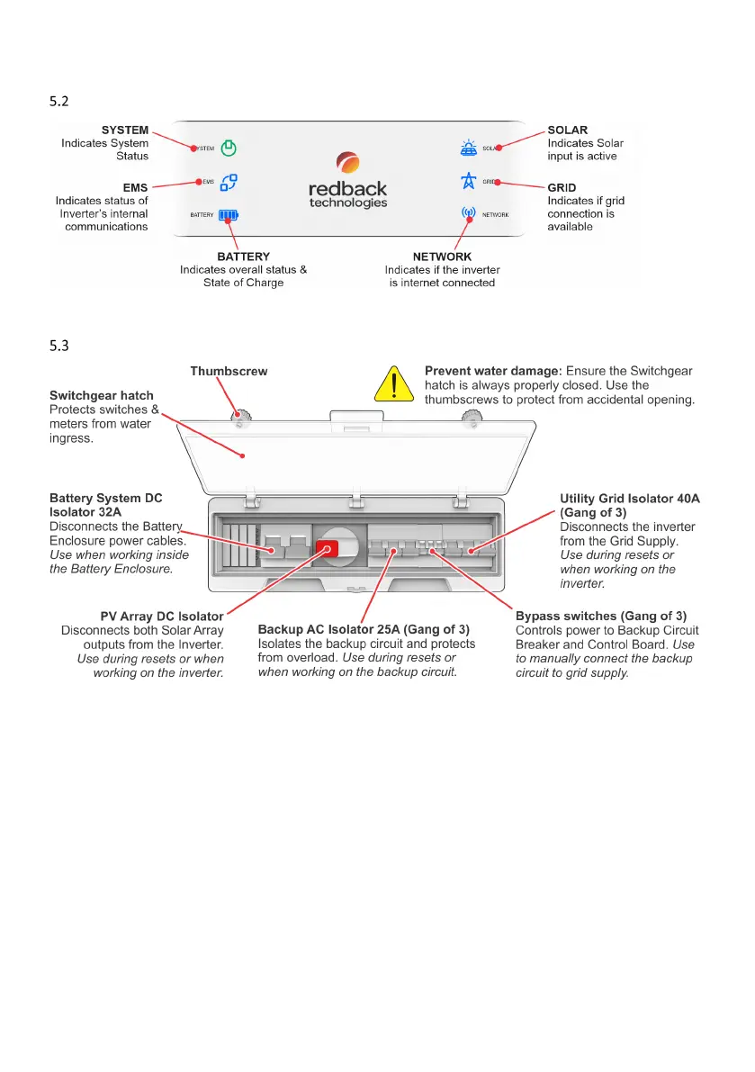 Redback ST10000 - Status Panel Indicator Lights; Balance of System (BoS) Switchgear