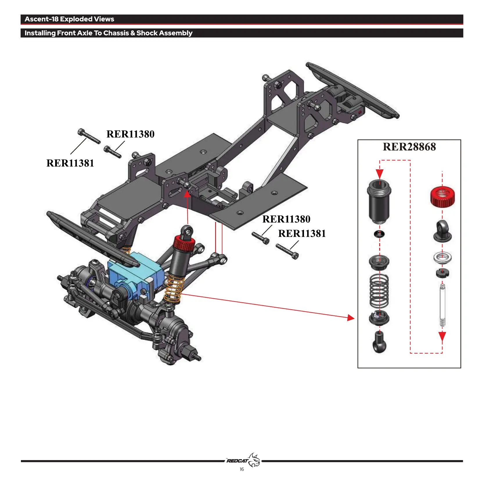 REDCAT ASCENT 18 - Installing Front Axle To Chassis & Shock Assembly
