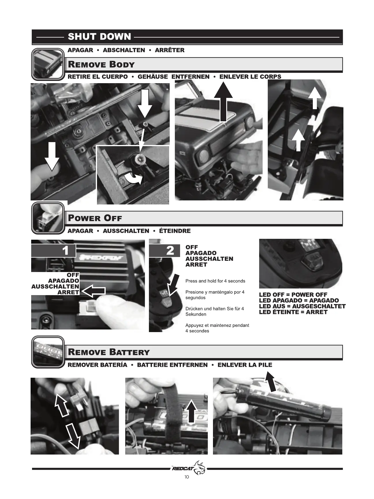 REDCAT GEN9 - System Shutdown Procedure; Transmitter and Vehicle Power Off; Battery Pack Removal