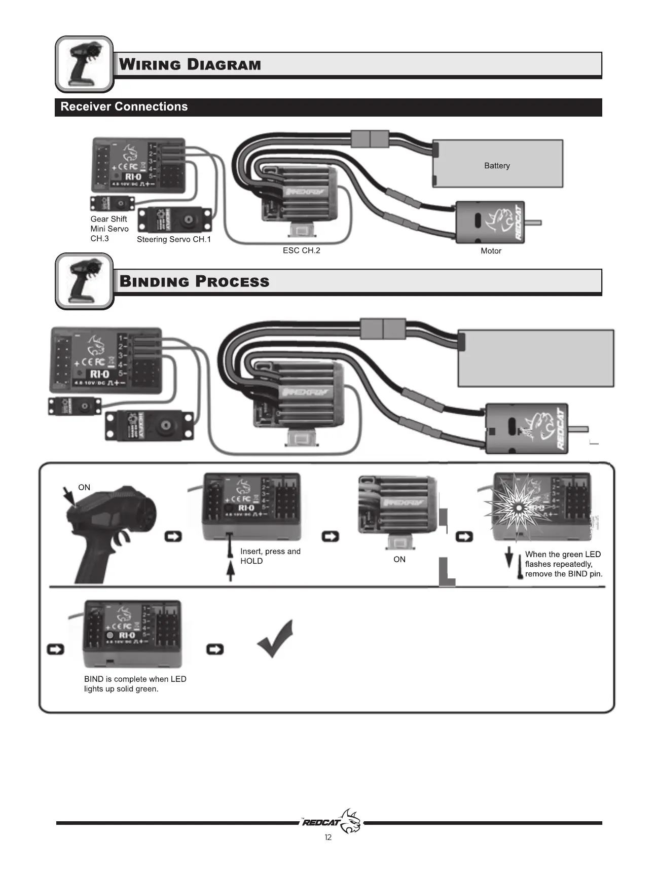 REDCAT GEN9 - Receiver Wiring and Binding Process; Receiver Connections Diagram; Transmitter-Receiver Binding Steps