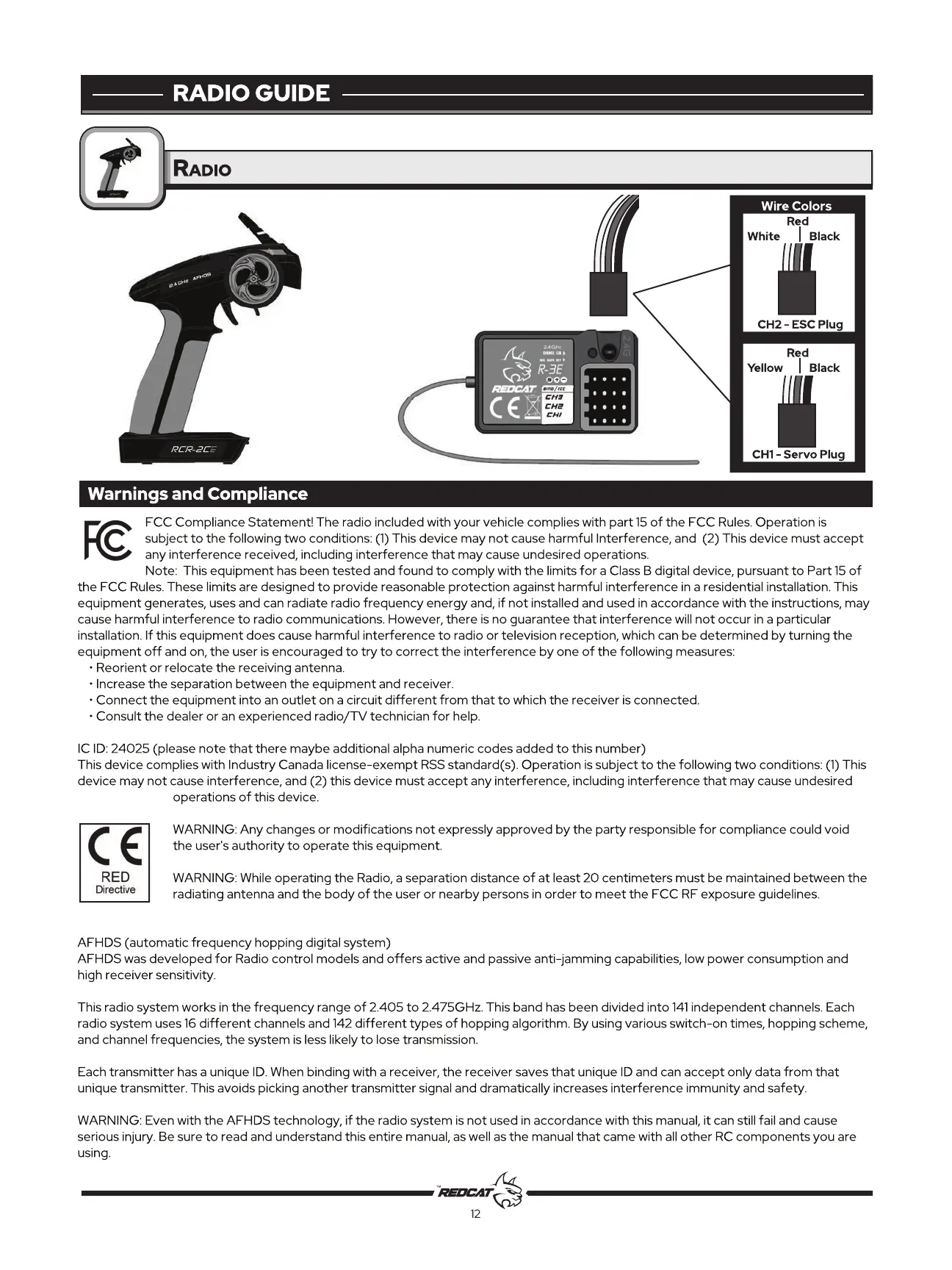 REDCAT Kaiju - Radio Guide; Warnings and Compliance