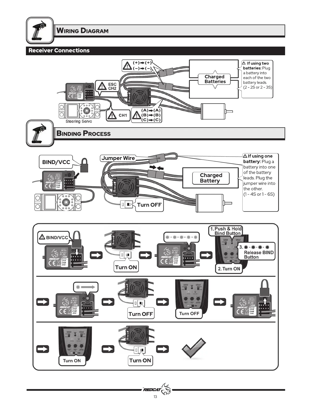 REDCAT Kaiju - Wiring Diagram; Receiver Connections; Binding Process