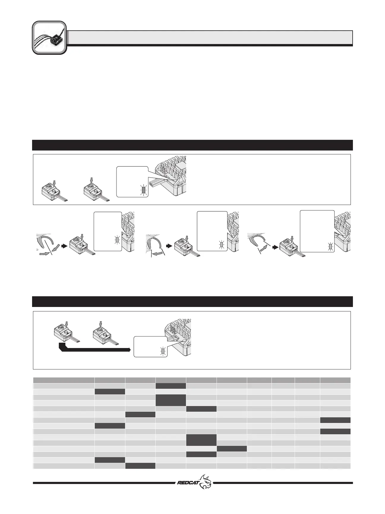 l’étalonnage et la programmation ESC) peut réinitialiser votre ESC en usine. La LED rouge clignote un long flash (le moteur bip un long bip en même