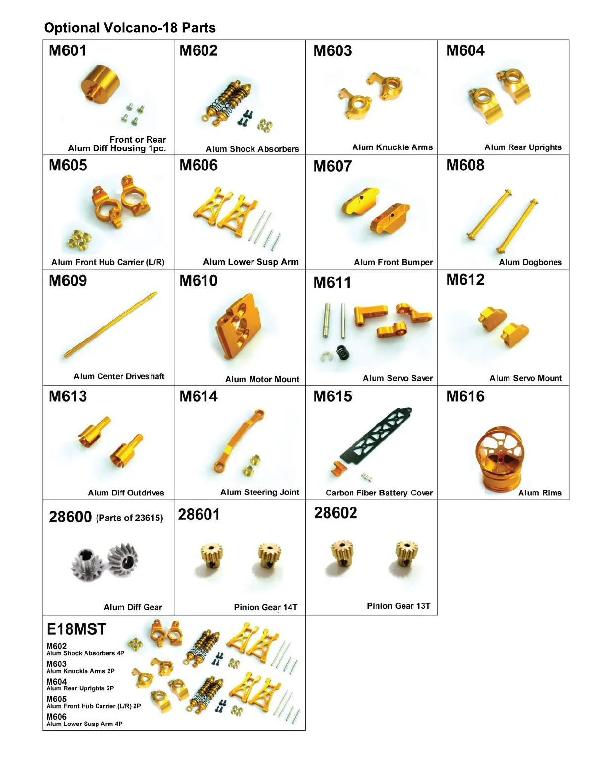 REDCAT Volcano 18 - Optional Volcano-18 Parts; Aluminum Upgrade Parts; Performance Upgrade Kits