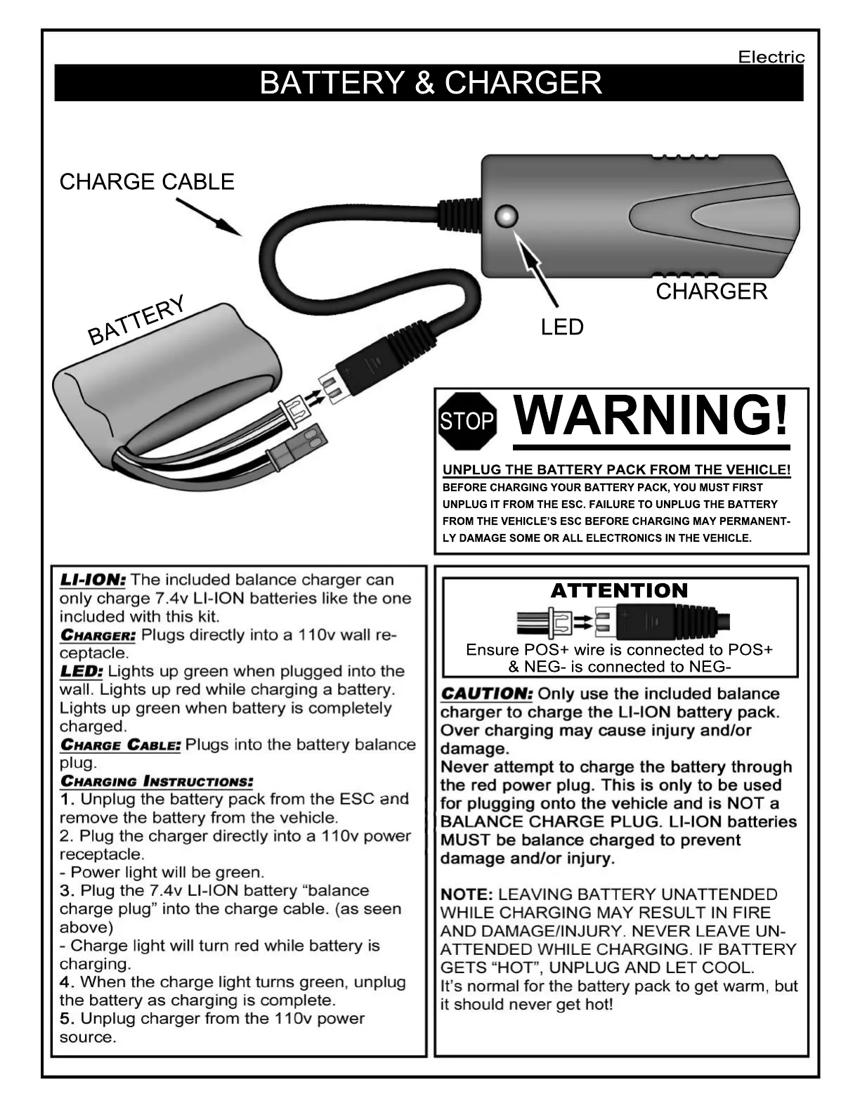 REDCAT Volcano 18 - Battery and Charger; Charger Operation and Indicators; Li-ION Battery Charging Instructions; Critical Charging Safety Warnings
