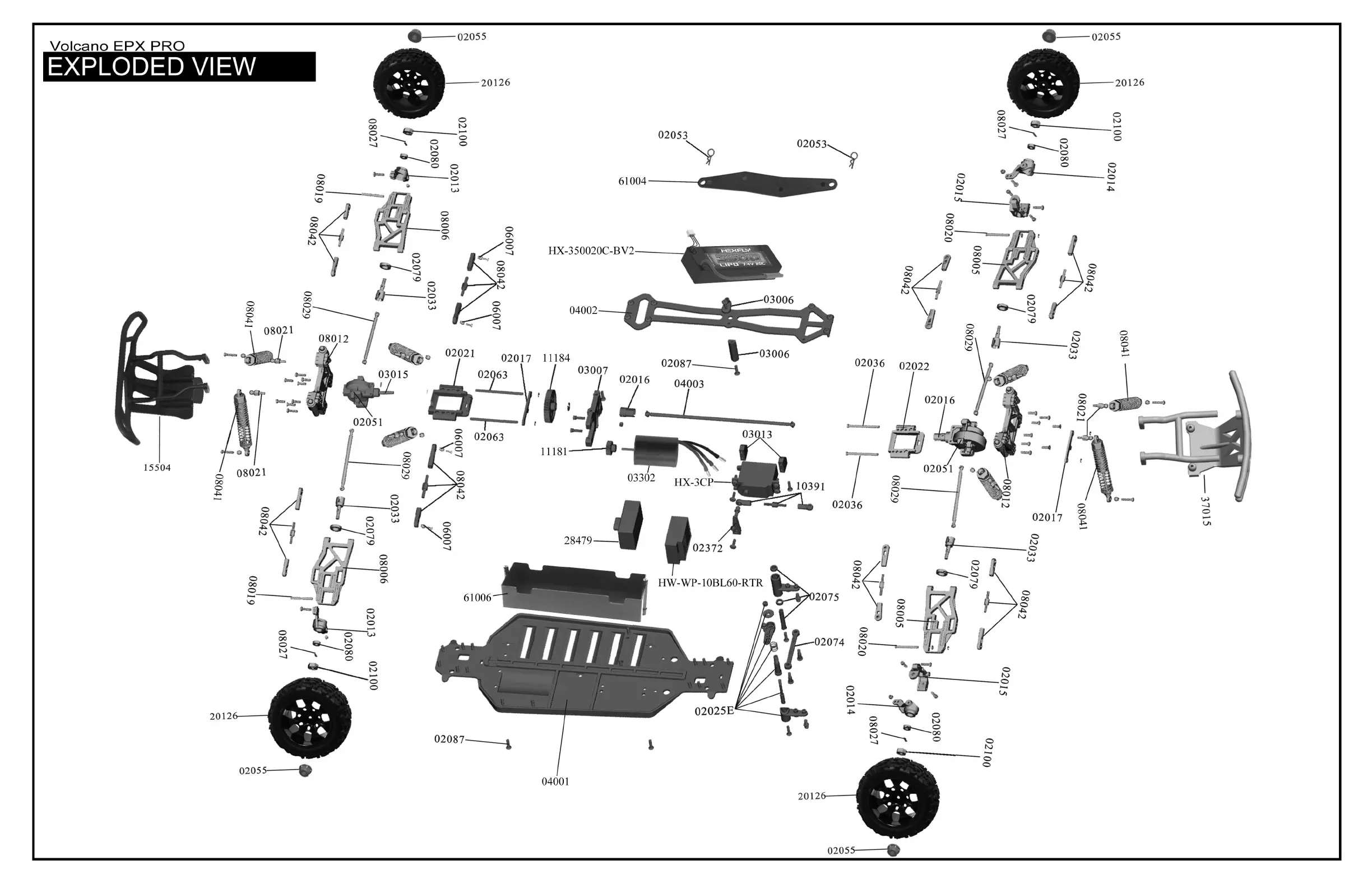 REDCAT Volcano EPX PRO - Vehicle Exploded View; Overall Assembly Diagram
