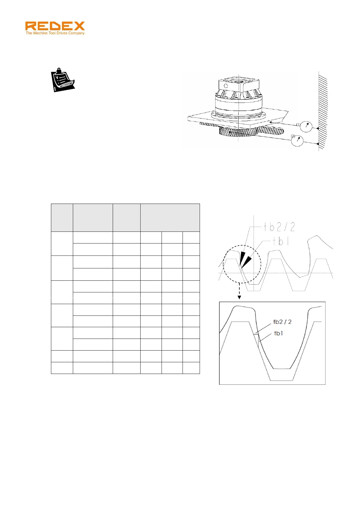 La différence entre les 2 comparateurs donne le jeu de battement de denture pignon / crémaillère (t