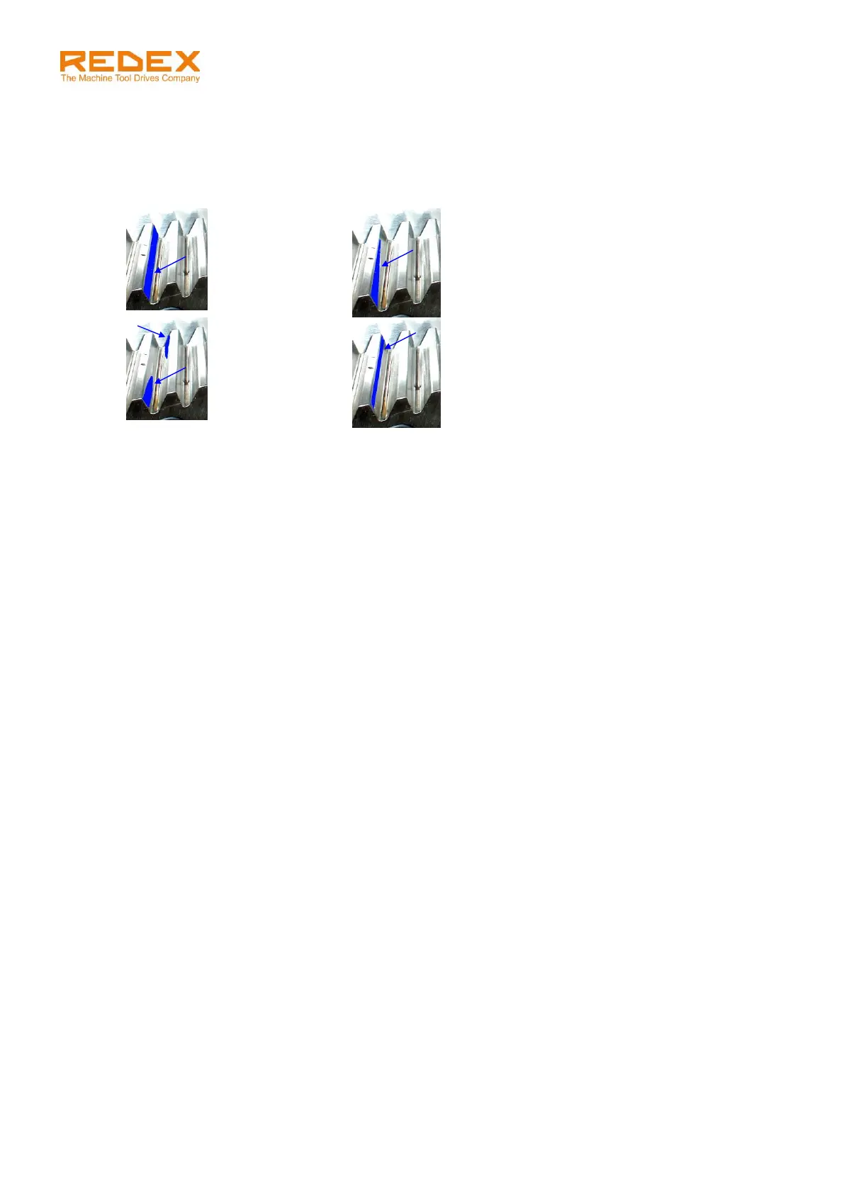 engrènent correctement, la couleur bleu recouvre 70 à 80% de surface de contact. Les figures ci-dessous