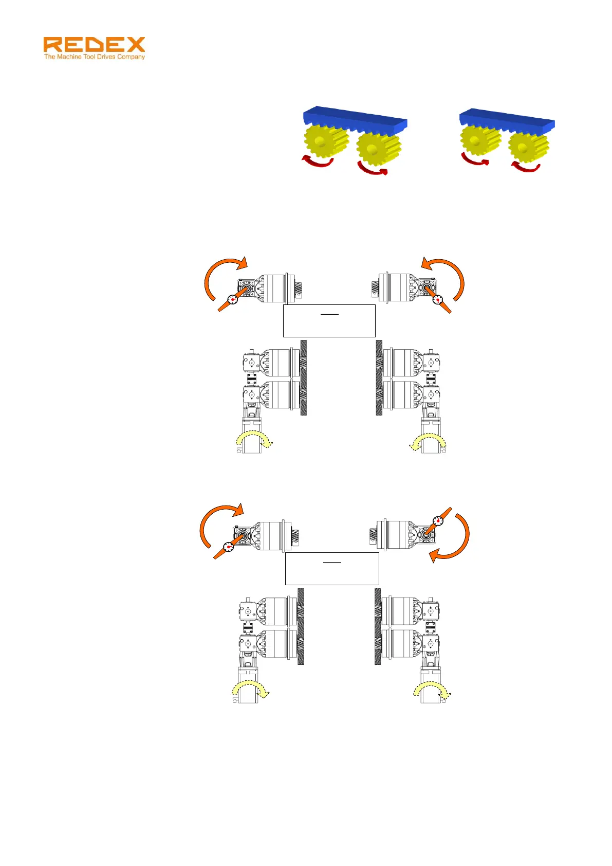 Les schémas suivants montrent le sens de la précharge en fonction du sens de rotation des moteurs.