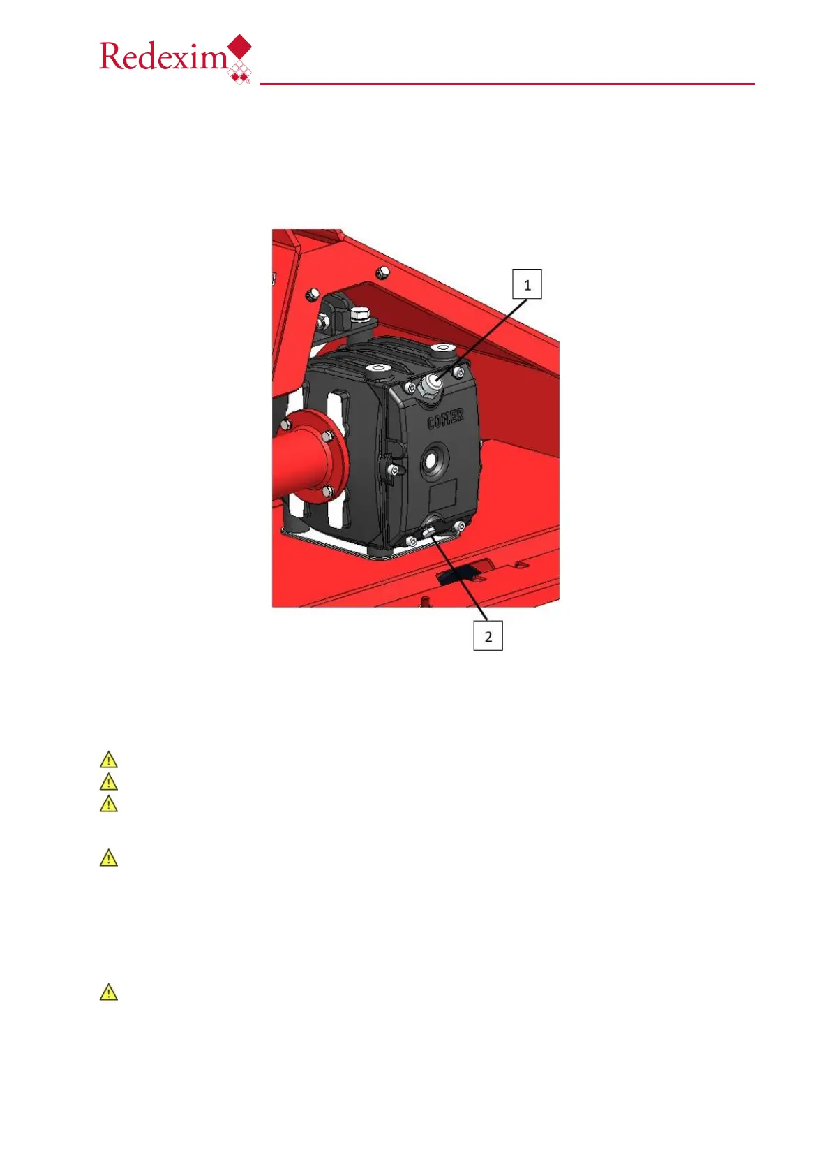 receptacle (more than 3.55 ltr. (0.94 gal.) under the plug (2) and remove the de-aerator (1).