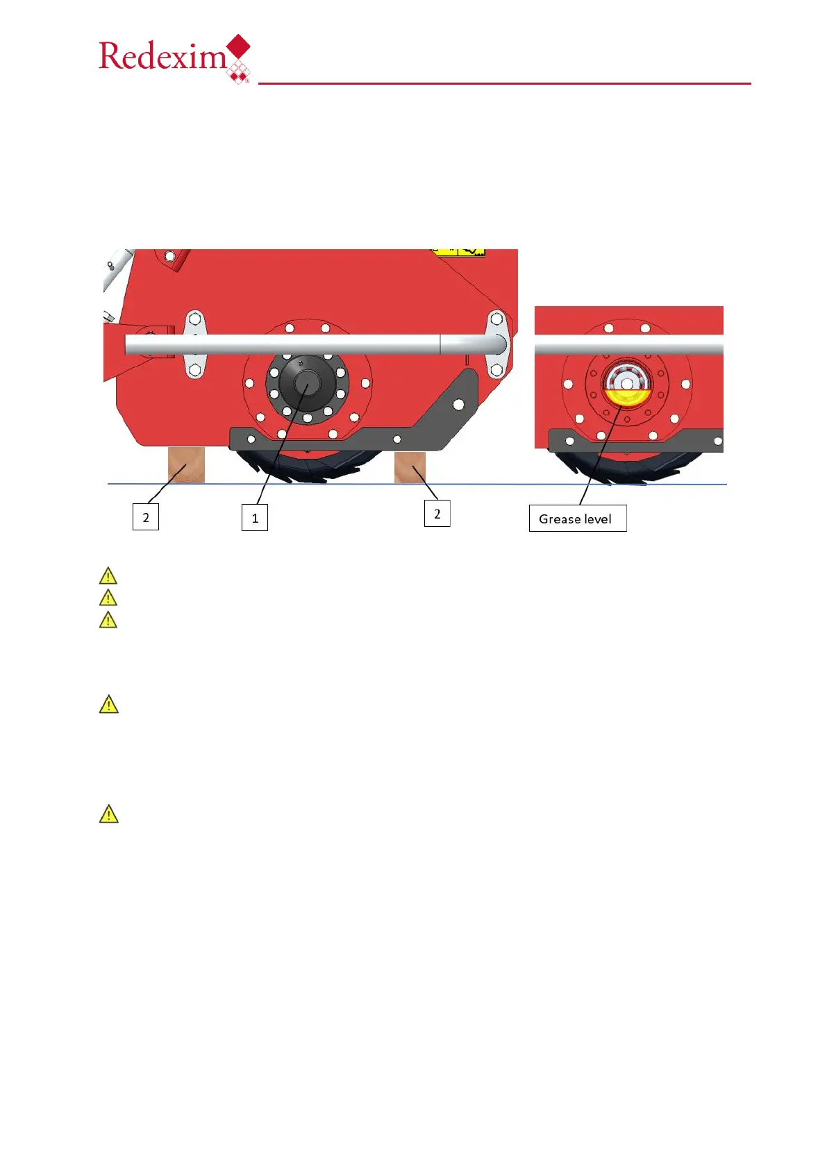 The grease level in the rotor’s bearing house should be checked periodically.
