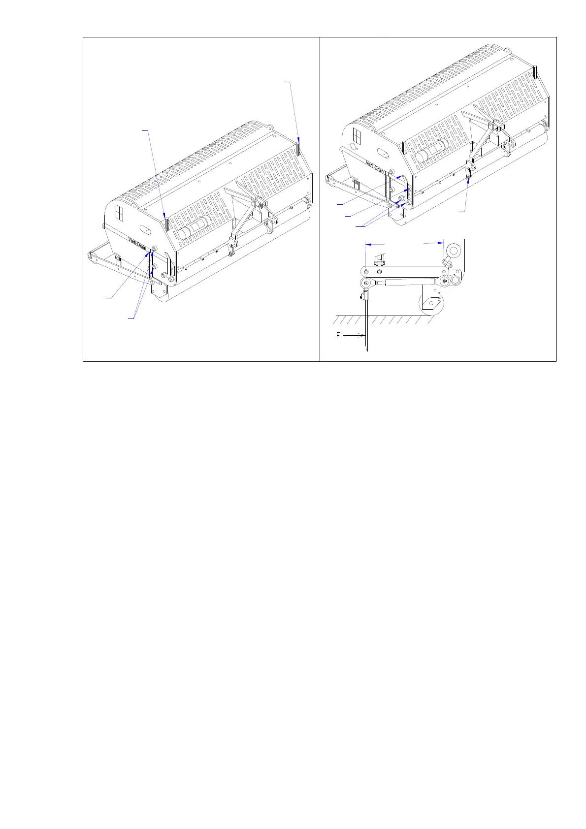 Raise the machine above the ground, slacken the nuts 2 at each side of the machine and nuts 3 at the