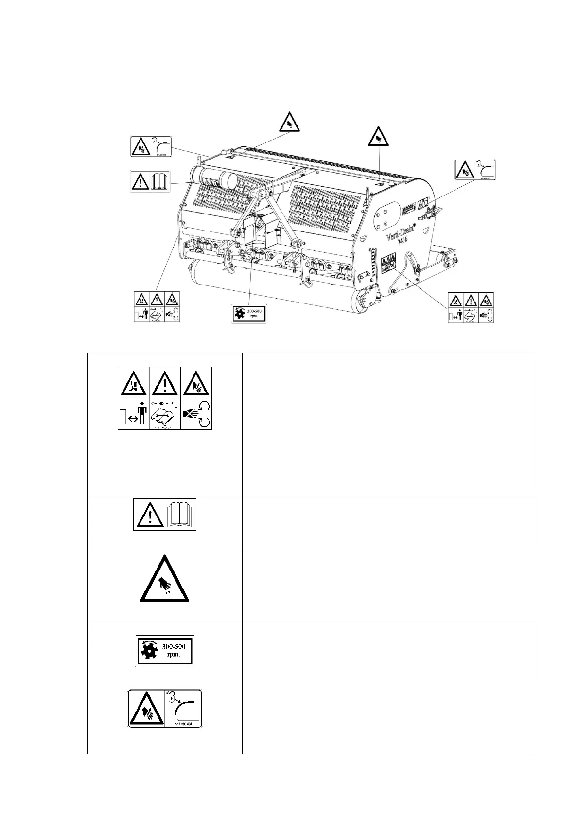 Safety stickers are located on both sides of the machine. These safety stickers must
