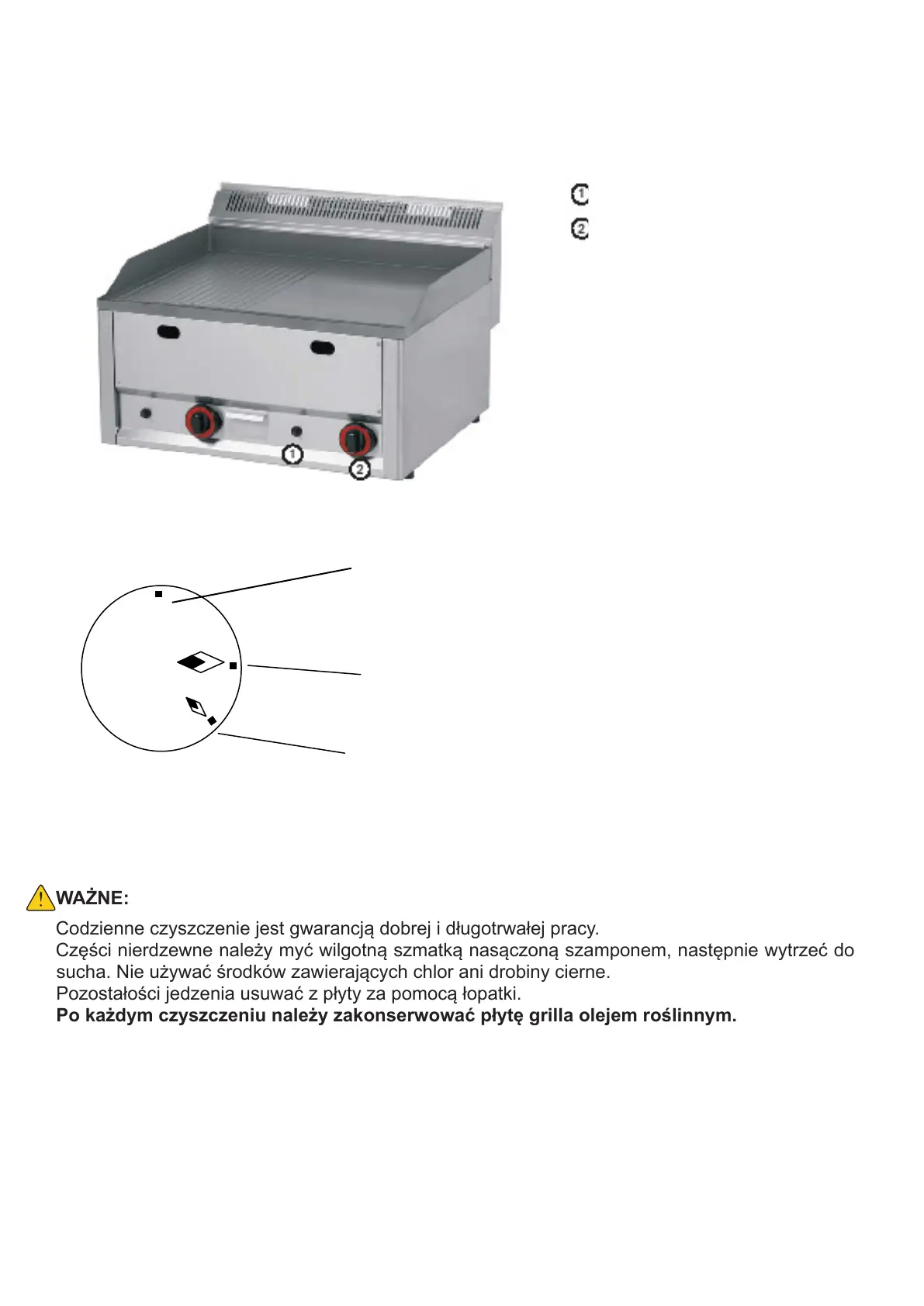 Po każdym czyszczeniu należy zakonserwować płytę grilla olejem roślinnym.