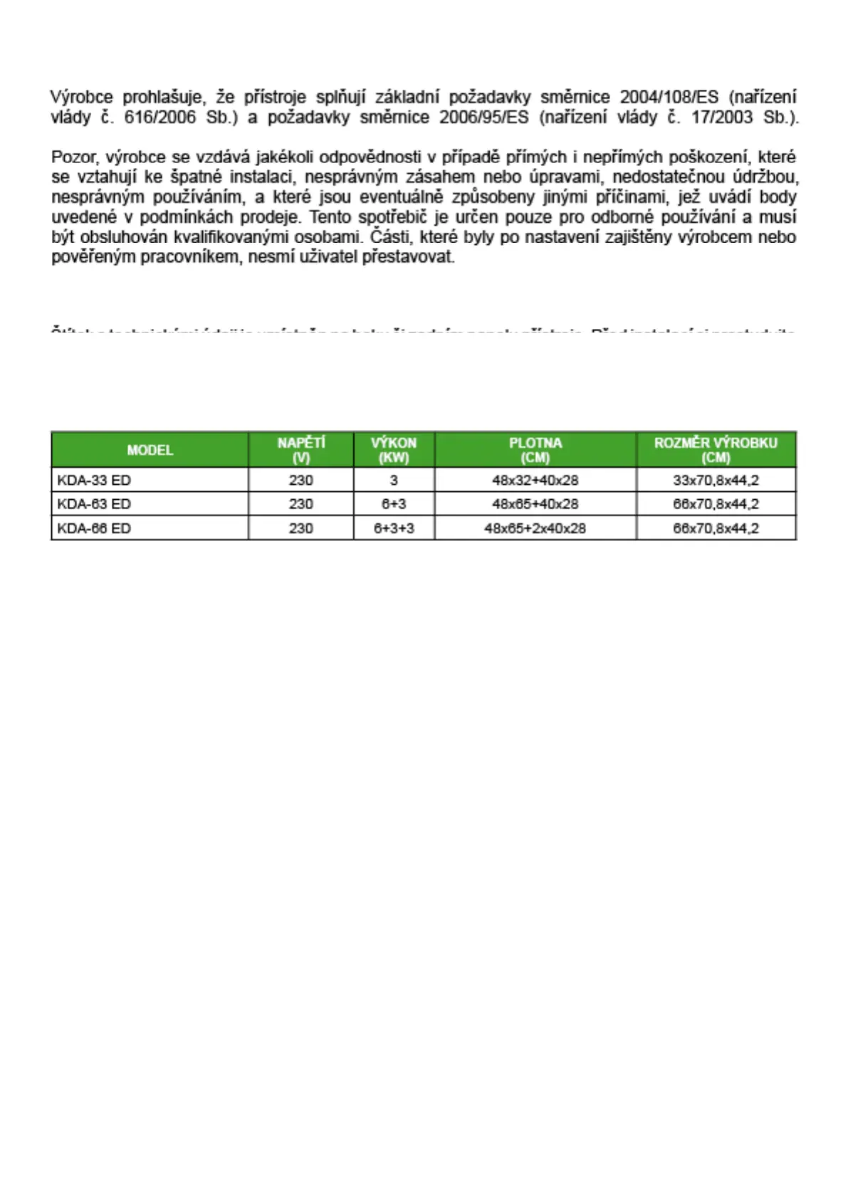 Redfox KDA 33 ED - Prohlášení O Souladu S Normami; Technická Data
