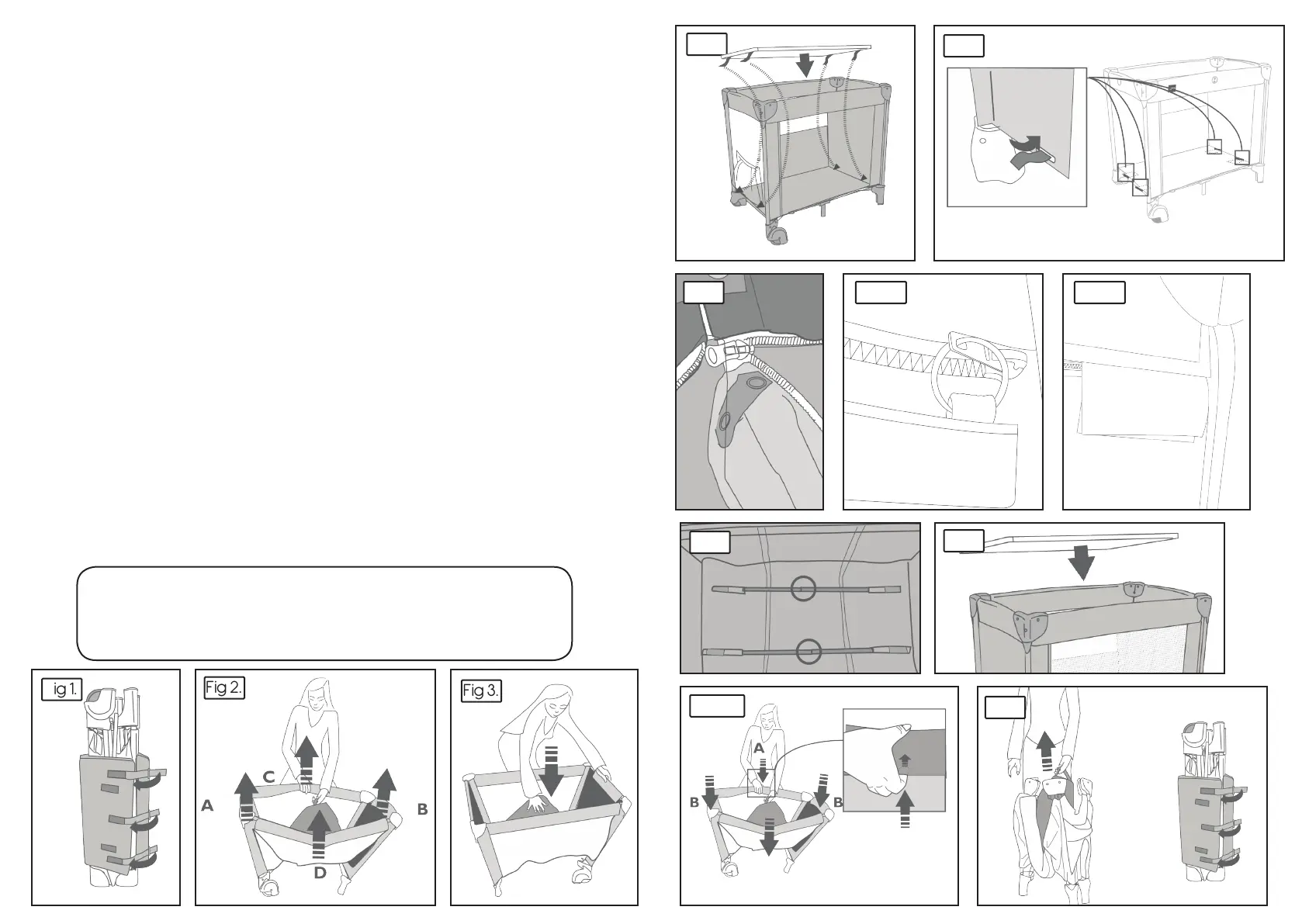 4. Place the mattress inside the cot with the Velcro straps facing downwards. Fig 4.