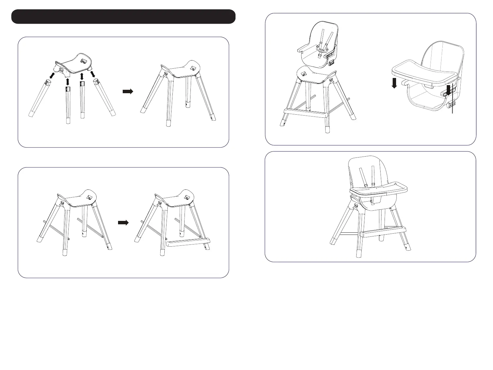 8. Insert the short legs into the corresponding slots on the bottom of the seat panel