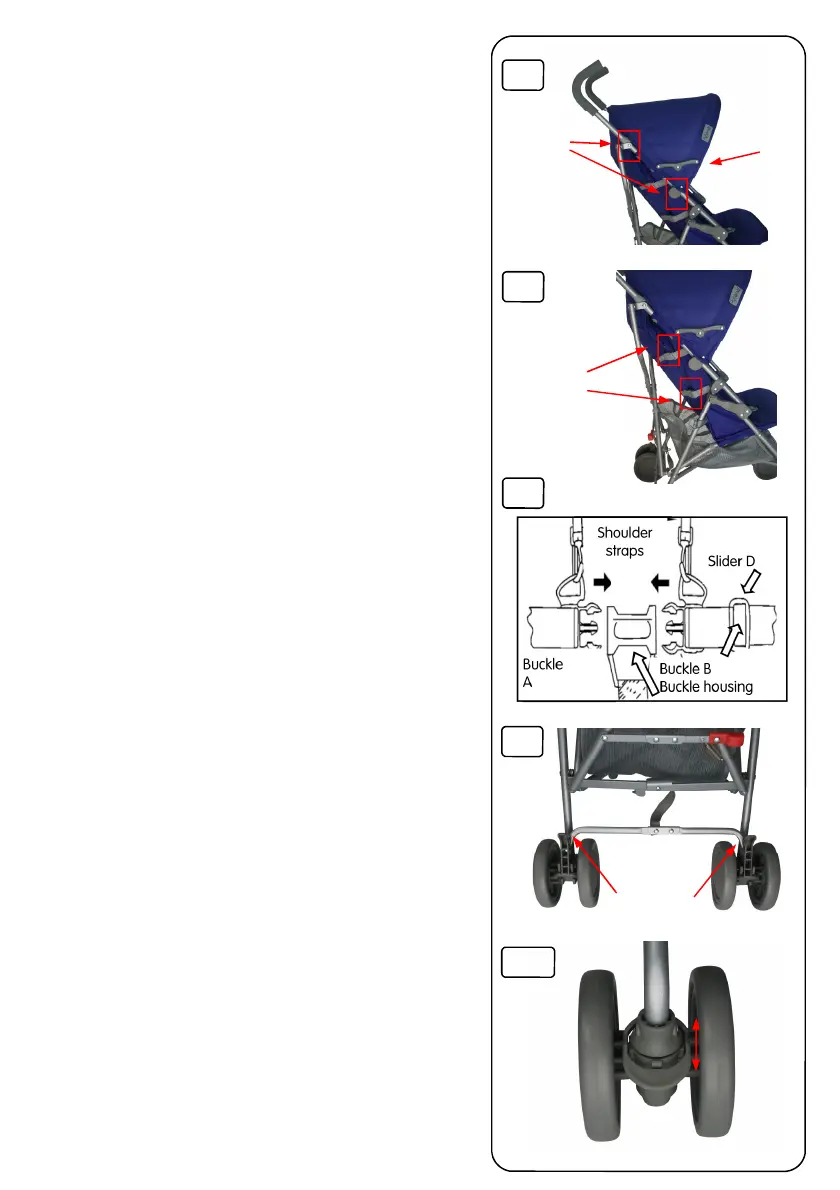 Adjust slider (D) to ensure a snug fit for your child. Repeat for