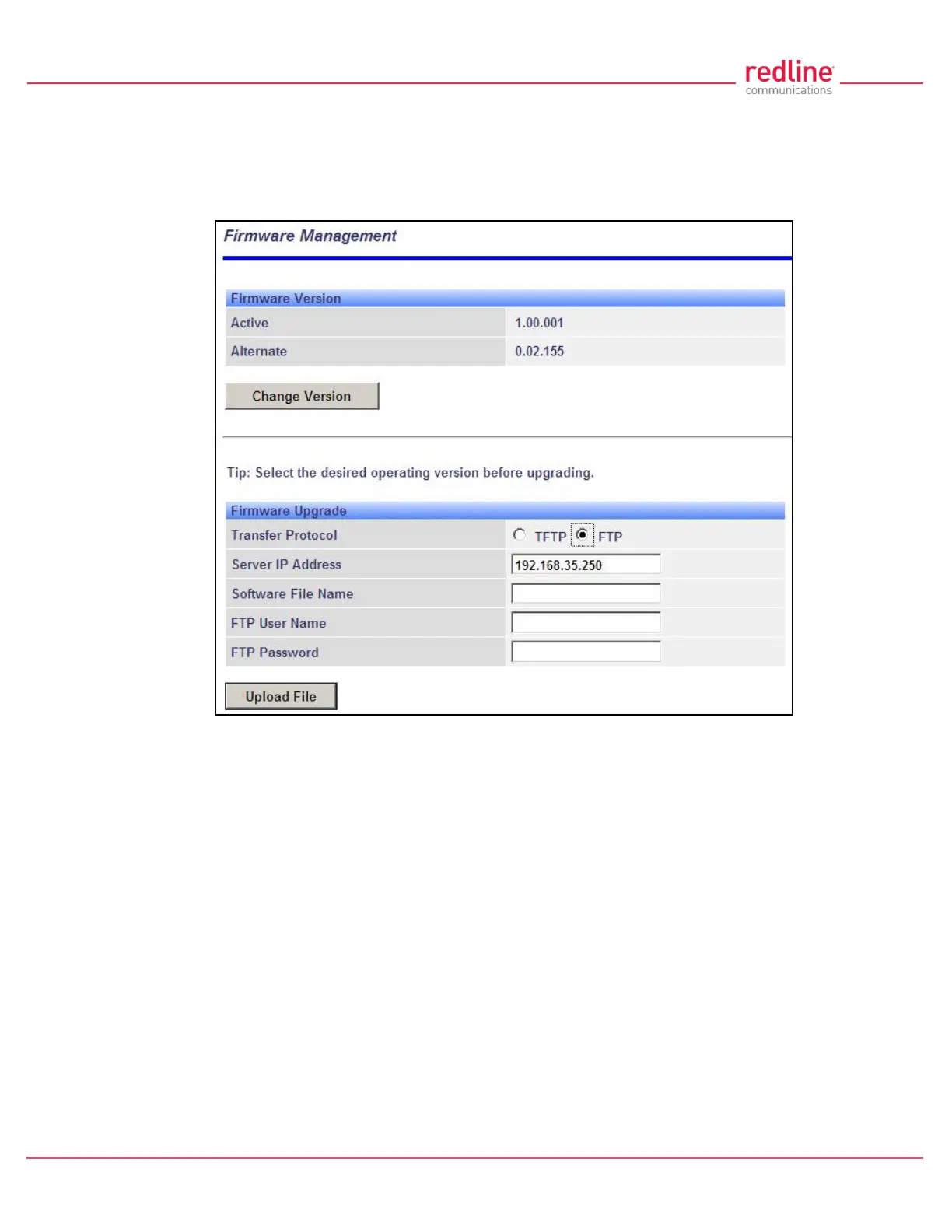 Change Version: Click to switch the Active and Alternative firmware versions and