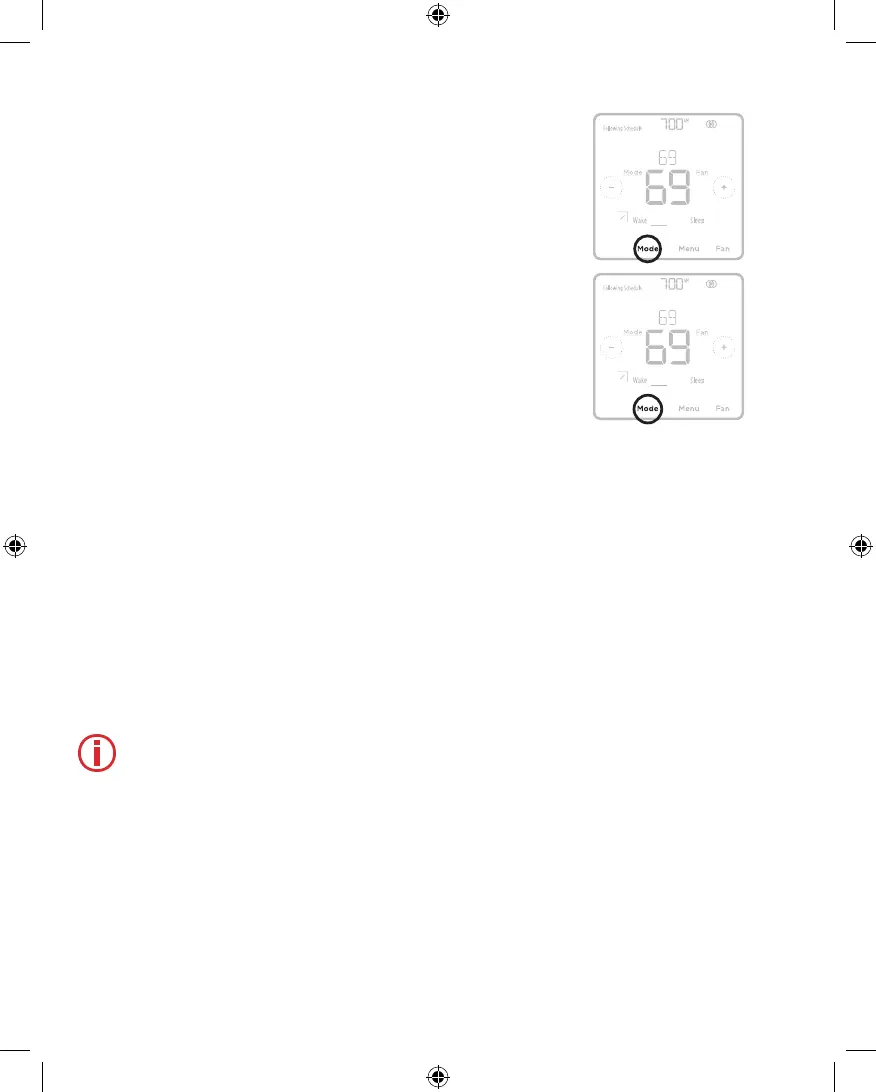 Le mode du système actuel (Heat [Chauffage], Cool