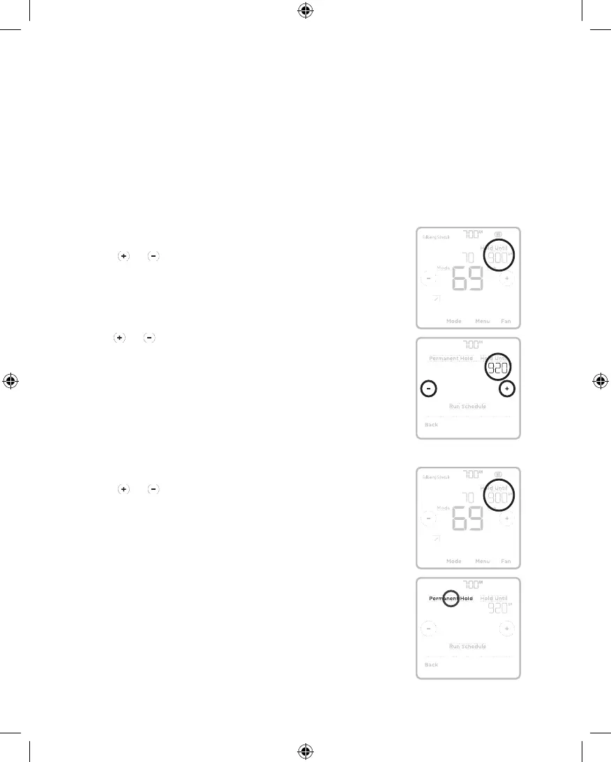 Permanent Hold: Overrides the current temperature set point permanently until you