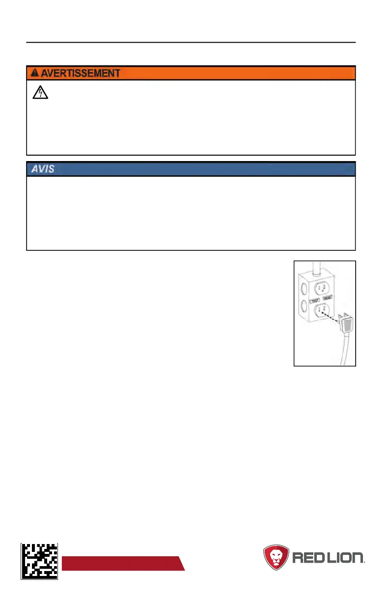 correctement ancré. Un interrupteur de circuit de défaut au sol (GFCI) est recommandé et peut être requis par le