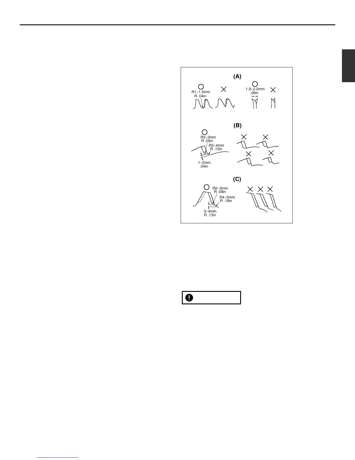 • Check the cutting edges and reform with a flat file.