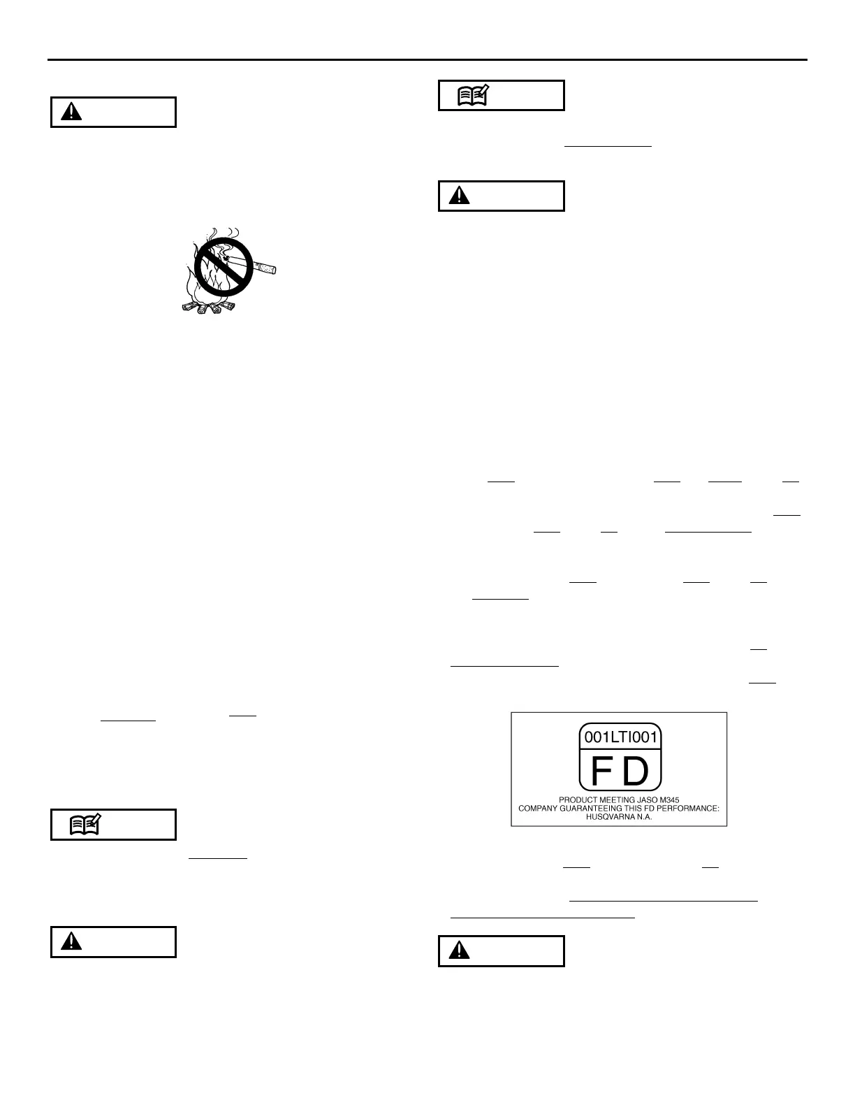 • Gasoline is very flammable. Avoid smoking or bringing any