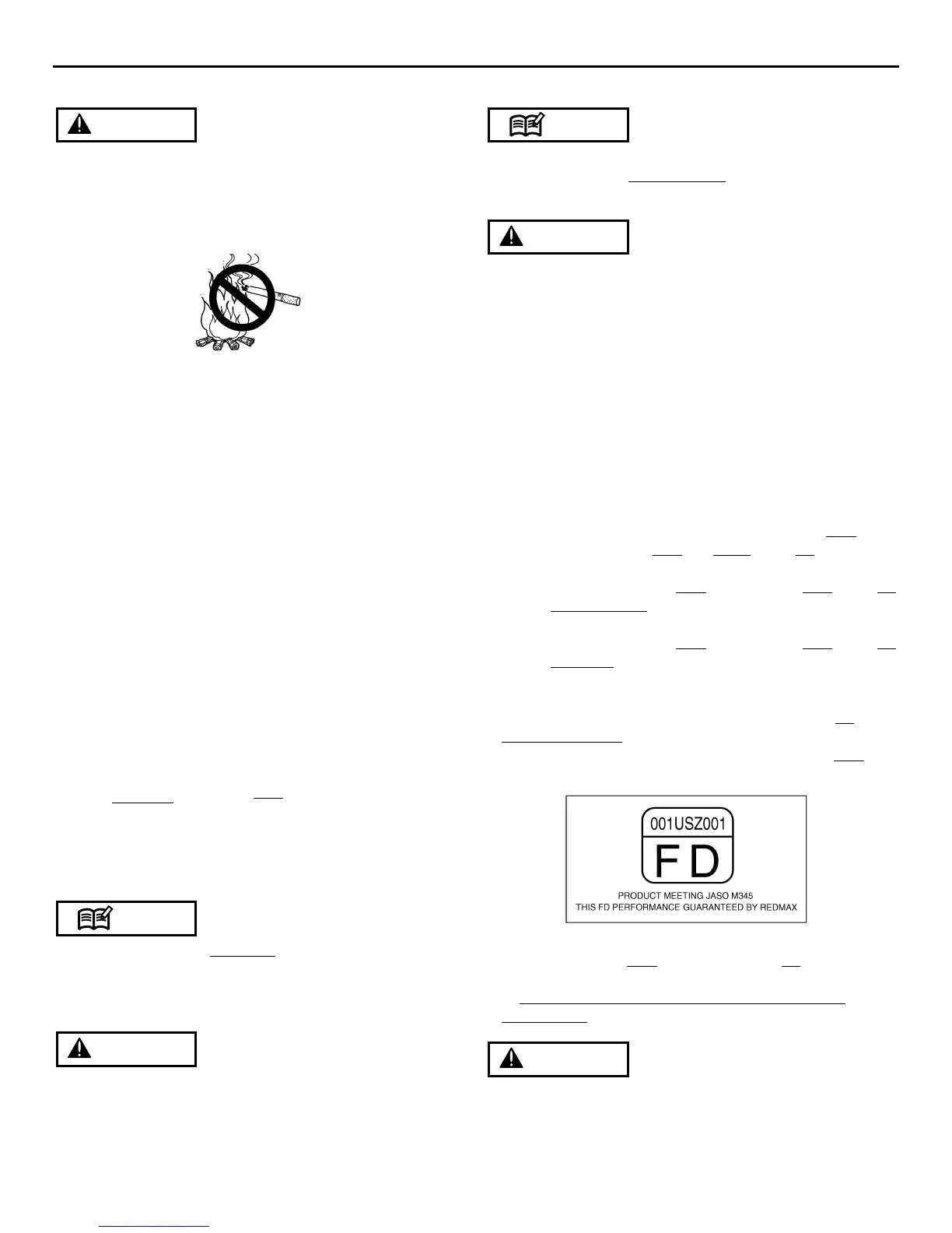 • Gasoline is very flammable. Avoid smoking or bringing any