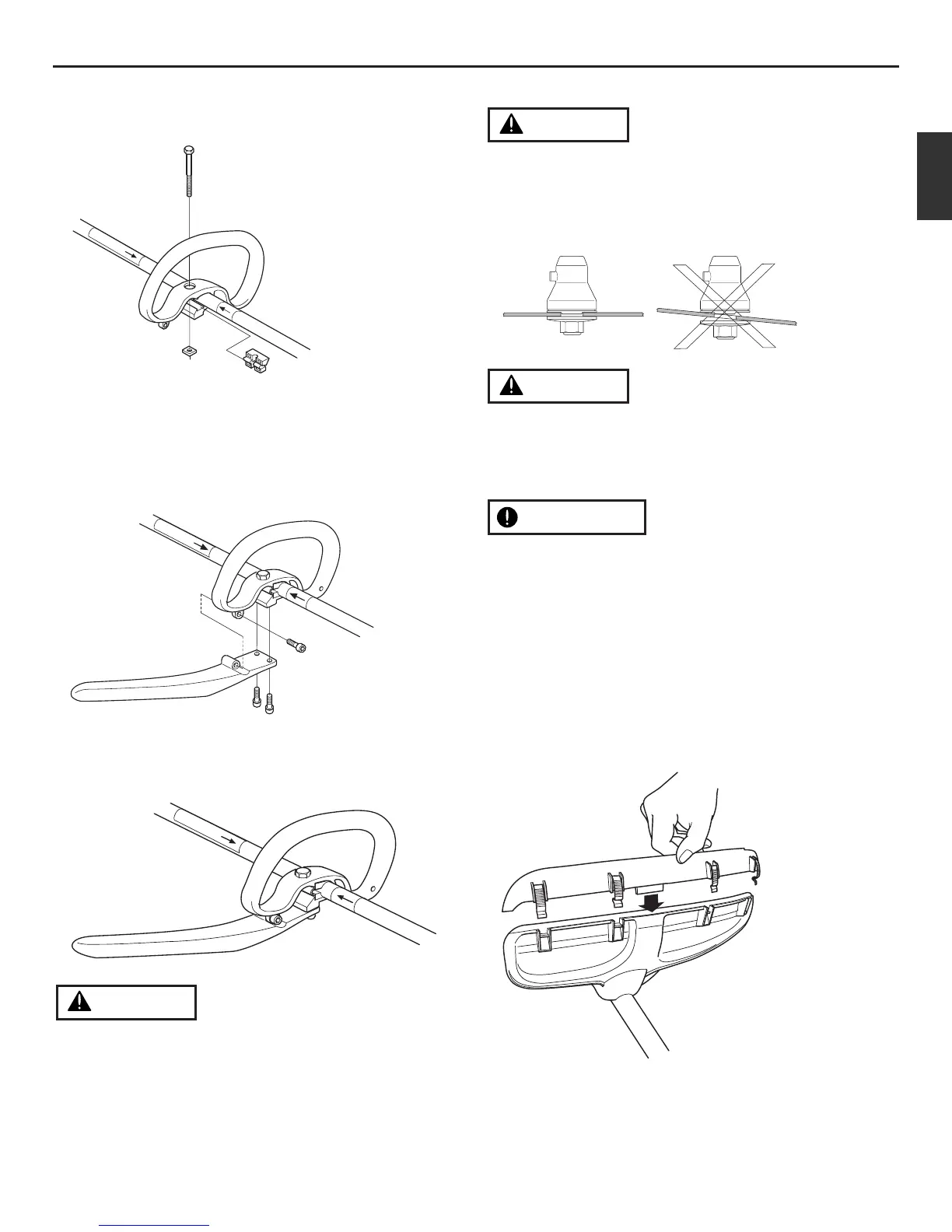 • Only grass blades/grass cutters or trimmer heads/plastic