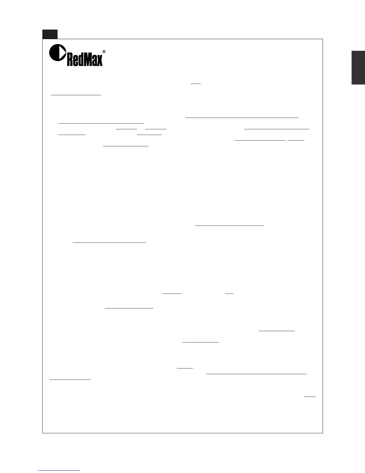 TO AN AUTHORIZED RedMax SERVICING DEALER FOR WARRANTY SERVICE.