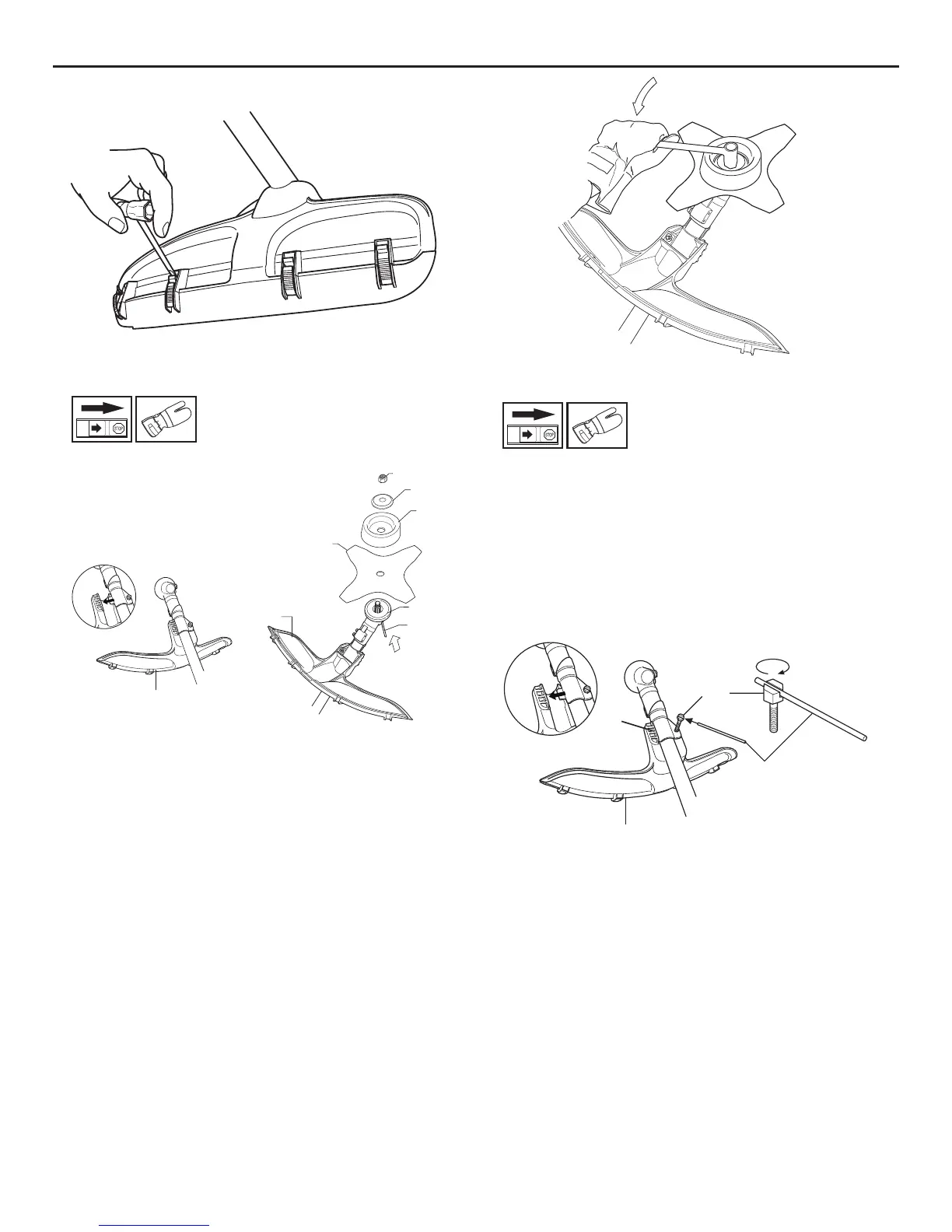 ■ Montage du protège-lame, de la lame à herbe et du couteau