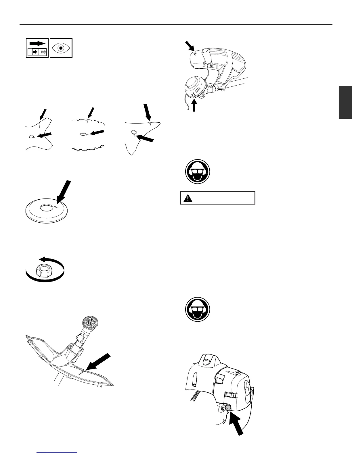• Contrôler la tête de désherbage et le carter de protection afin